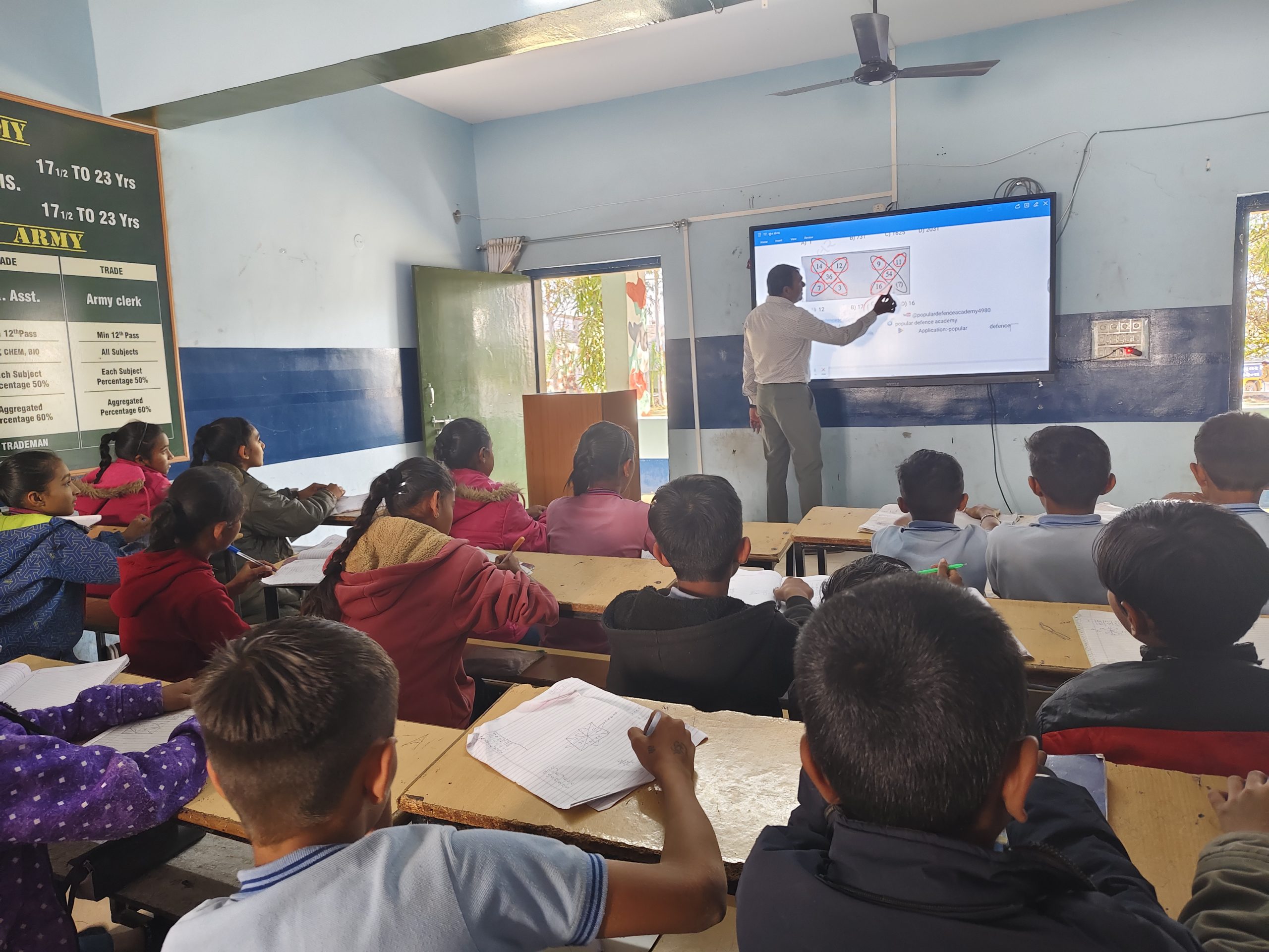 Expert faculty teaches all subjects, with smart board-based exam prep for Grades 3-8, including Jawahar Navodaya. Co-curricular activities like painting and GK use projectors to enhance student talents.